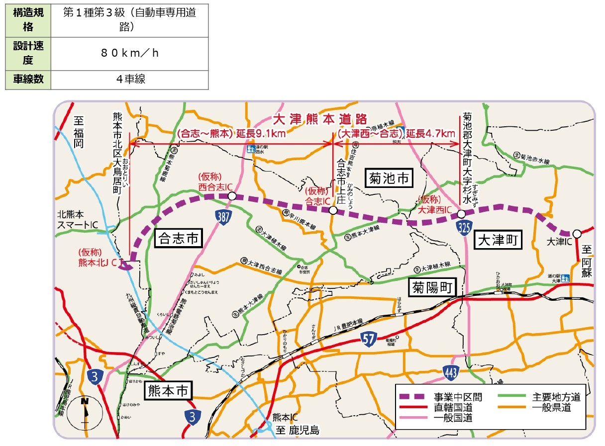 当社をはじめ、多くのハウスメーカーで分譲中の「合志市かすみヶ丘(当社18区画分譲中)」近隣は、「大津熊本道路」の(仮称)西熊本ICが出来ることが予想されています。