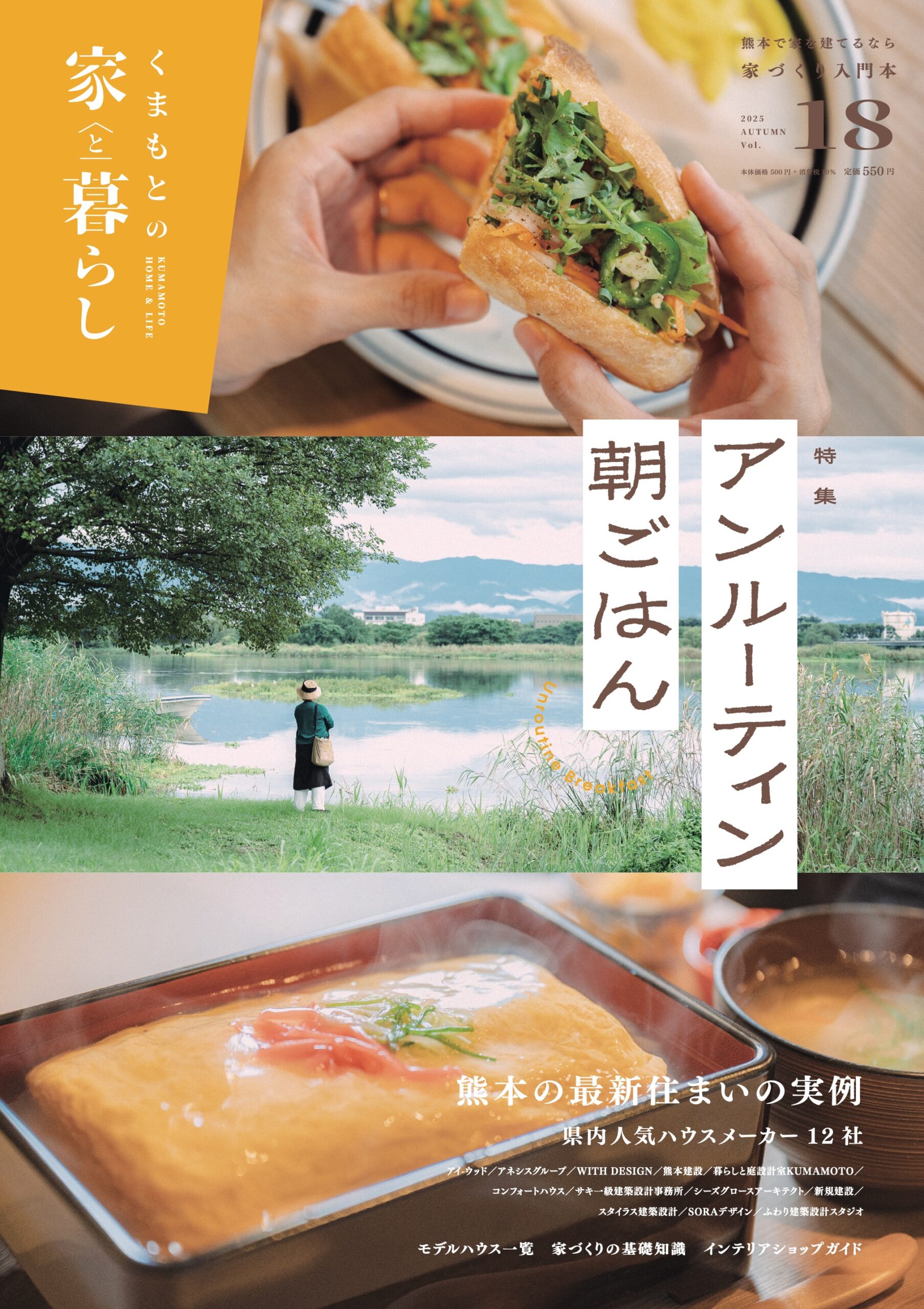2025.10.25 メディア掲載 本日、くまもとの「家と暮らし」18号発売 10月25日、くまもとの「家と暮らし」18号が発売されます。 当社の掲載ページは、「合志市クレストタウンかすみケ丘・販売型モデルハウス」を紹介しております。 是非とも熊本県内及び福岡県南部の書店やコンビニ等にてお買い求めください。
